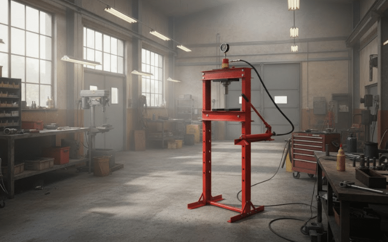 Eine stabile Rahmenkonstruktion sorgt dafür, dass der Druck gleichmäßig verteilt wird und verlängert die Lebensdauer der Werkstattpresse. Stahlrahmen sind oft die beste Wahl.